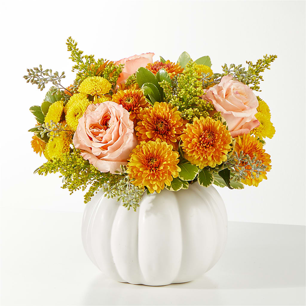 The perfect transition into the fall season will arrive at their doorstep with the Peachy Pumpkin, a soft palette of butterscotch, yellow and peach florals to celebrate the start of autumn.